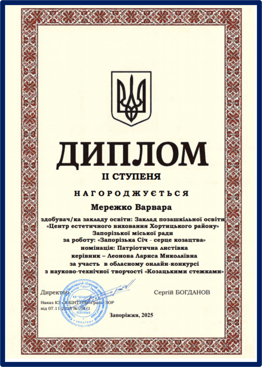 КШ «Світоч» ЗПО «ЦЕВ Хортицького району», методист Михайлік Інна Миколаївна. 💙💛